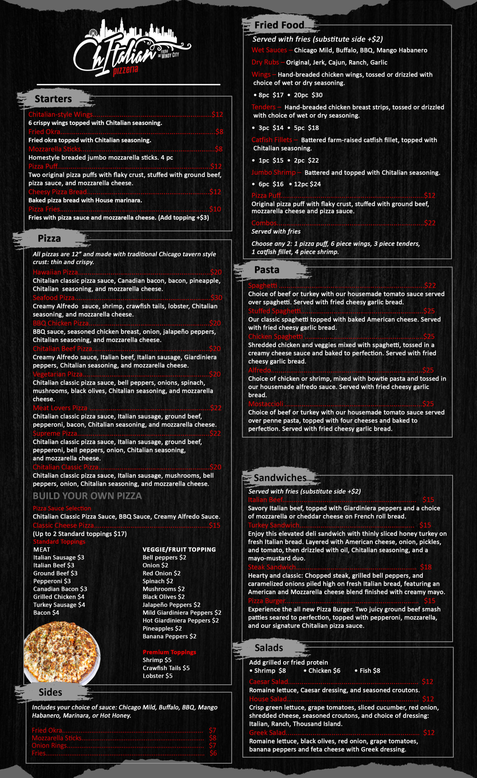 Pizza Sauce Options: Chitalian Classic Pizza Sauce, BBQ Sauce or Creamy Alfredo Sauce